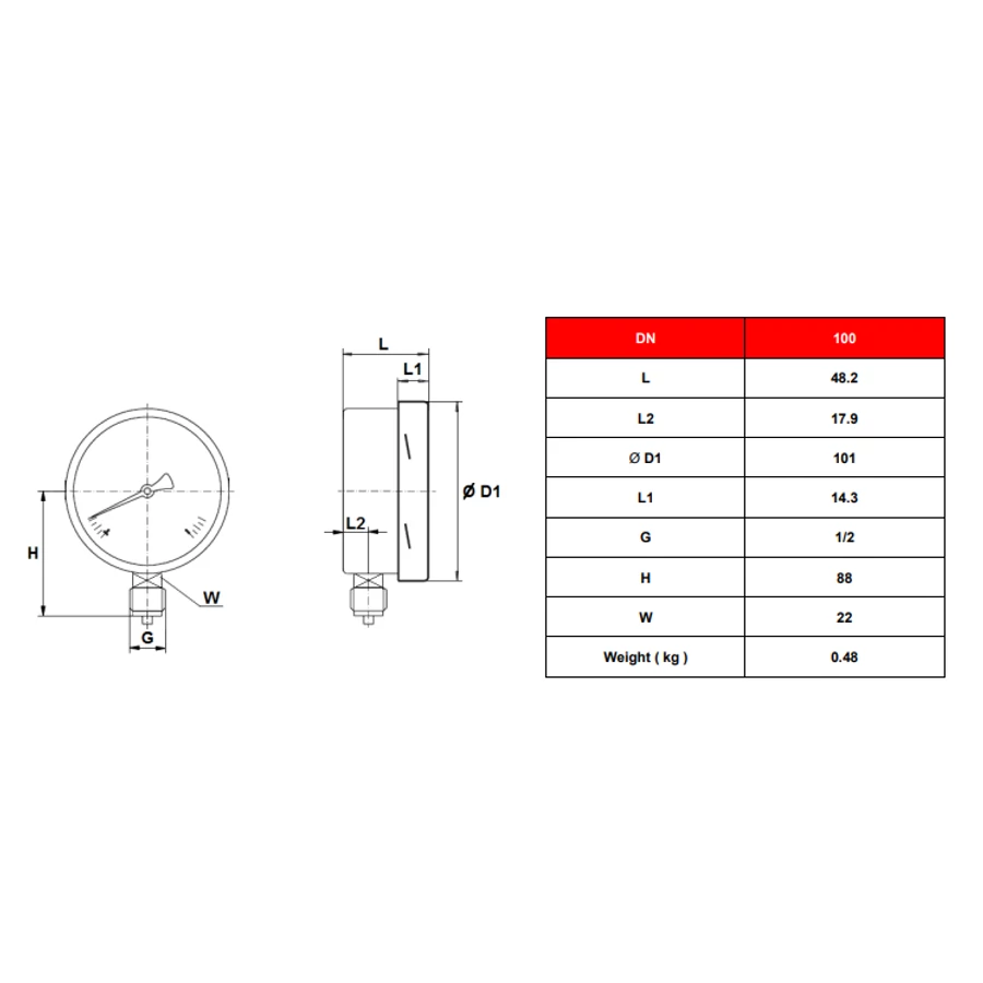 Manométer || AISI 304 ház || d=100mm || 0-400mbar || alsó csatlakozás